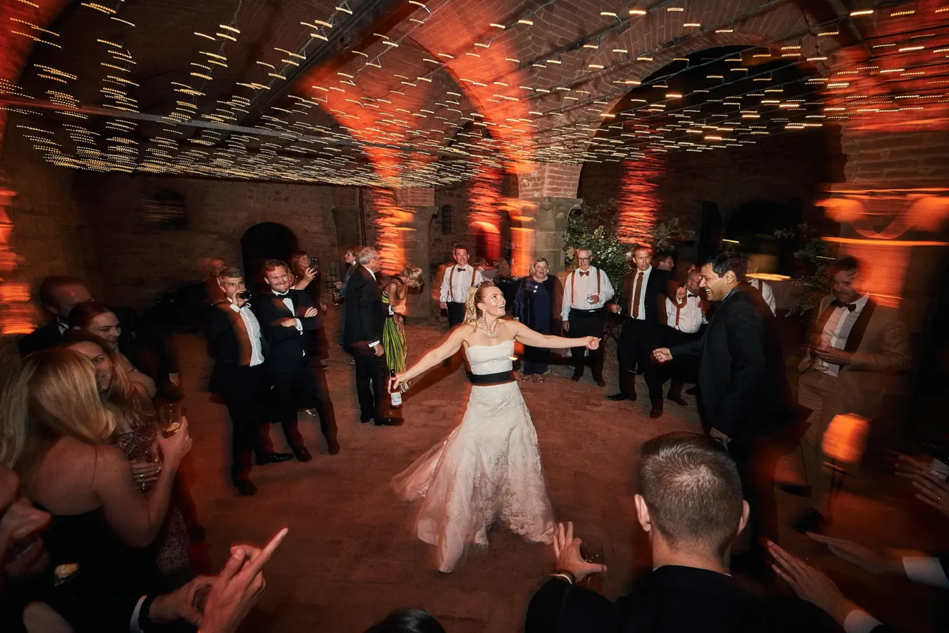 - A high-energy party in the castle courtyard, fueled by a live DJ, saxophonist, and drummer.