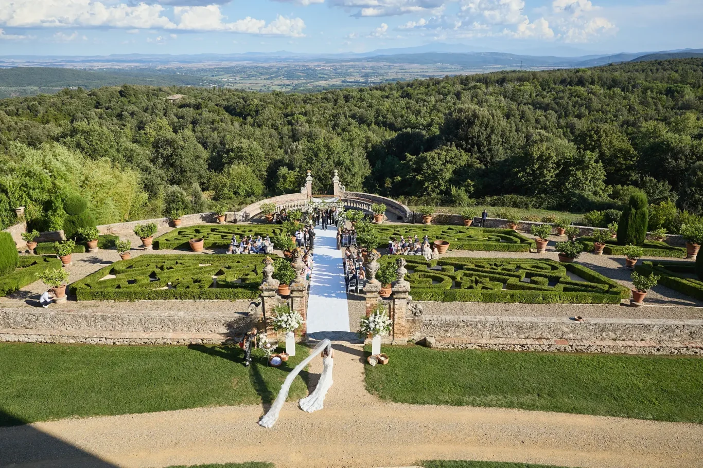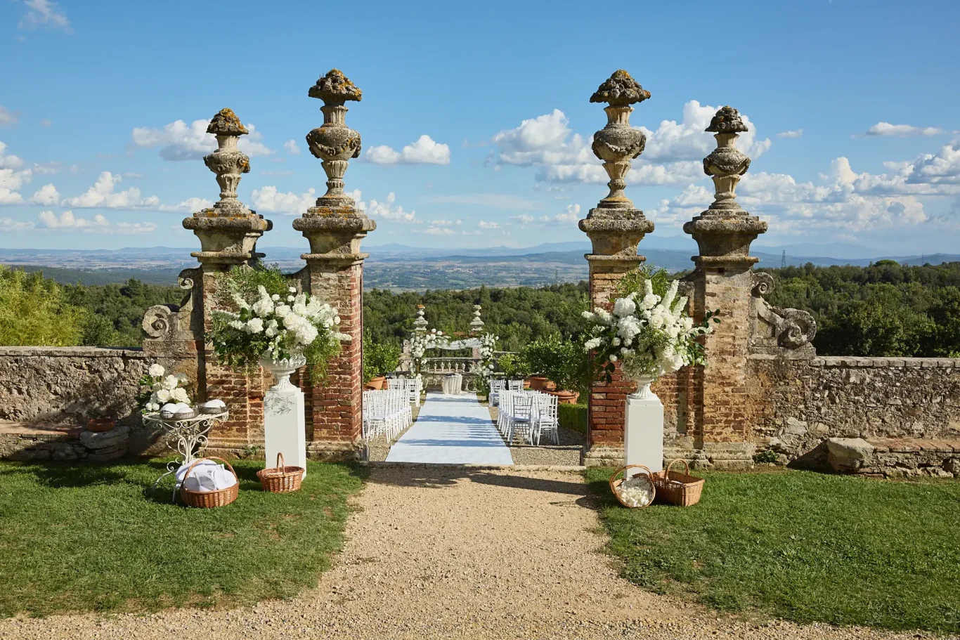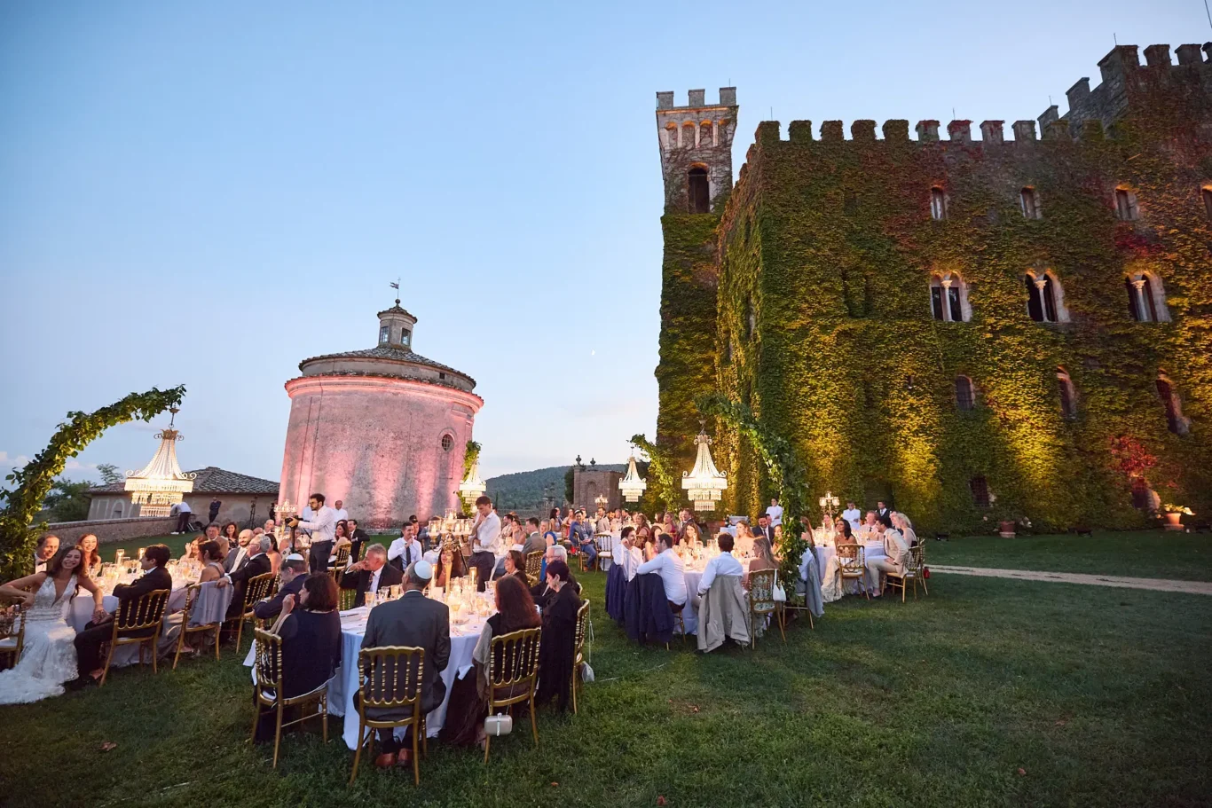 - An unforgettable al fresco dinner, with elegant chandeliers suspended under the Tuscan stars.