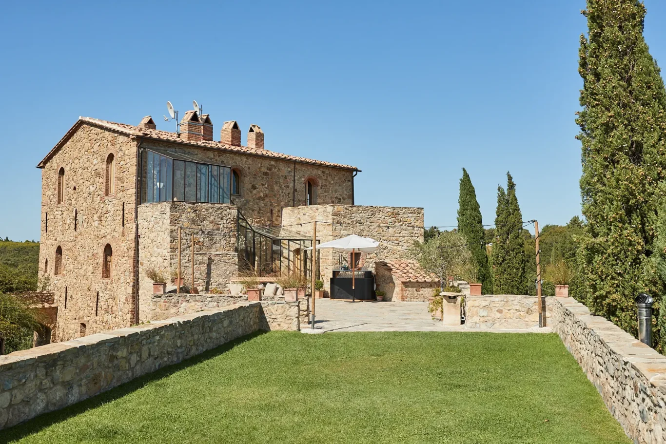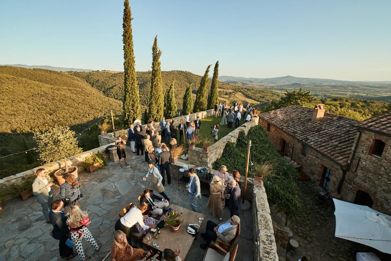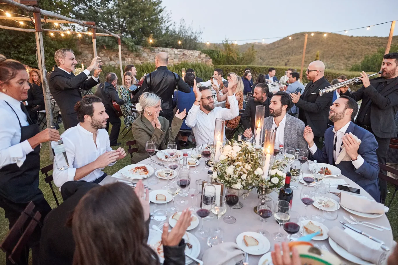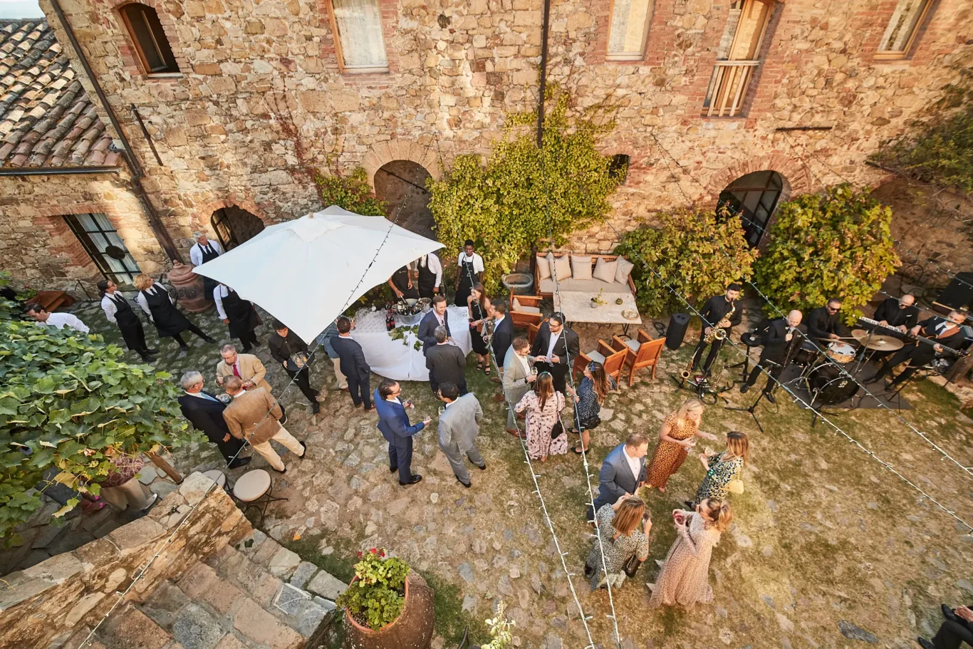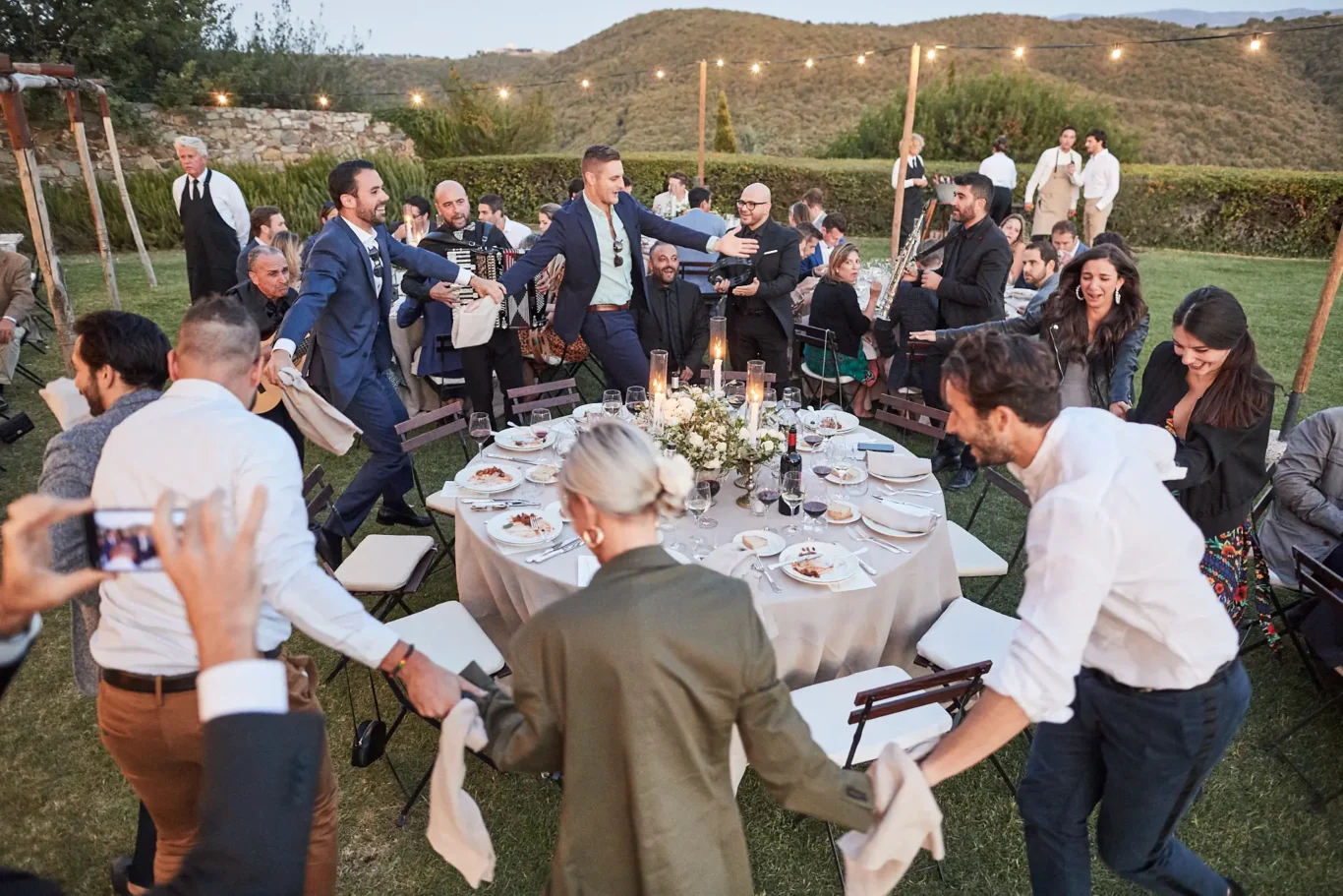 After a leisurely dinner filled with laughter and conversation, the energy shifted once more. We invited everyone back to the main courtyard, which had been transformed into an elegant open-air lounge and dance floor. The musicians kicked up the tempo, and the rest of the evening was dedicated to music, cocktails, and dancing under the vast Tuscan sky.