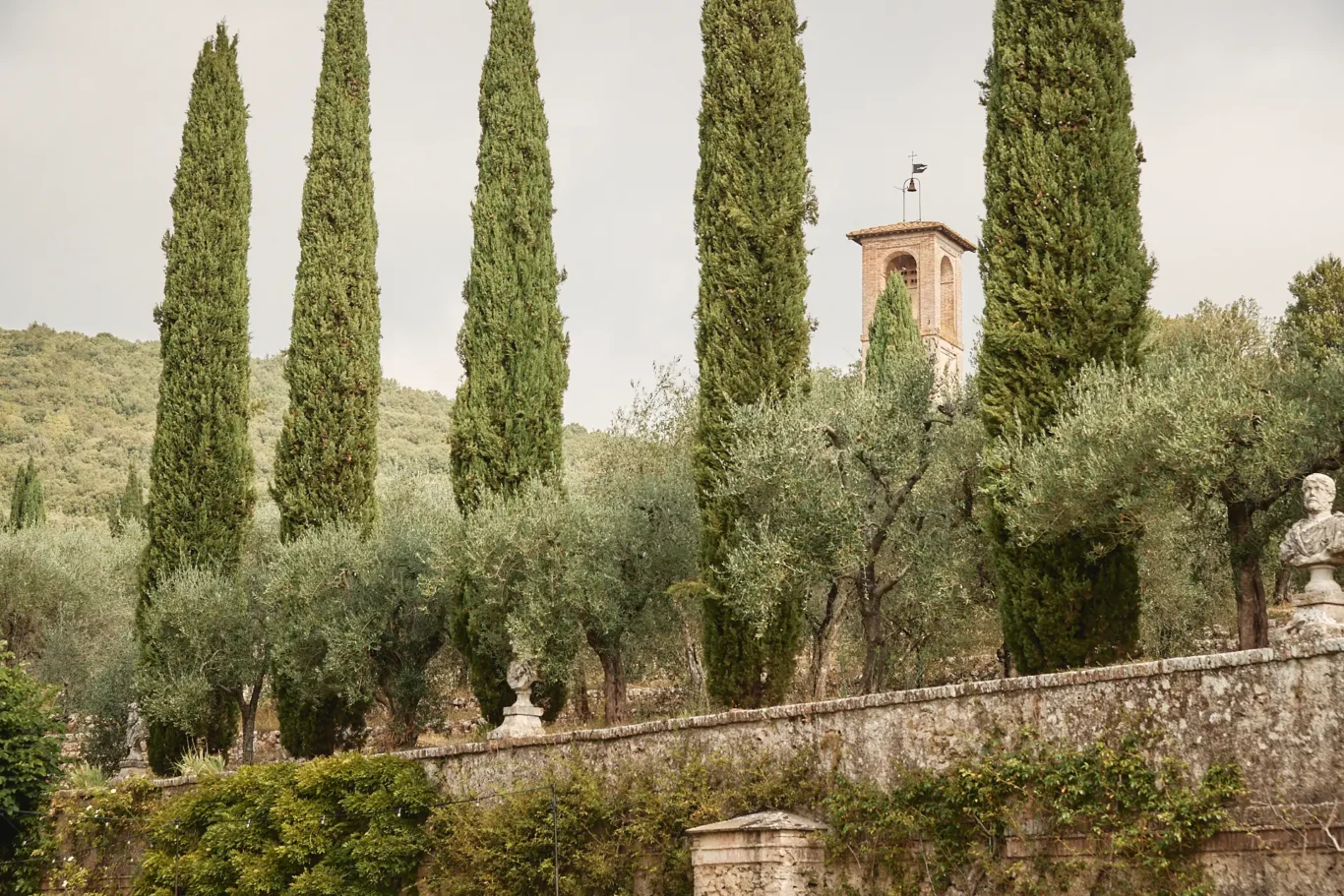 While guests had been enjoying the grounds of Villa Cetinale all week, the wedding ceremony itself was to be held at another of Tuscany’s jewels. We transported guests the short distance to the magnificent Castello di Celsa, revealing a second, secret location. The reveal created a sense of wonder, adding another layer of discovery to their Italian holiday.
