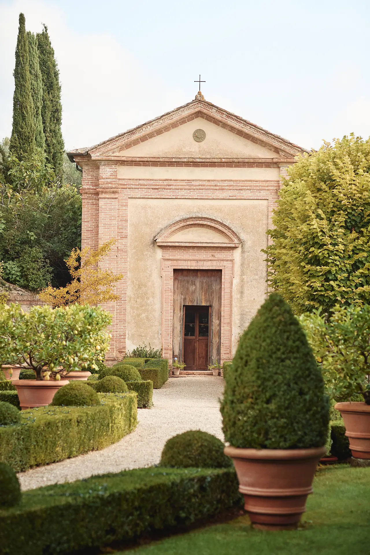 The wedding day began with a palpable sense of joyful anticipation at Villa Cetinale. With the estate as their private residence for the week, there was a beautiful calm as the day’s events began. Gina prepared with her bridesmaids in one of the villa’s elegant suites, a serene space filled with laughter and light, while Alex and his groomsmen readied themselves on the other side of the historic home. Every detail was in place, allowing the families to simply exist in the moment. Once ready, Alex and the groomsmen departed for the ceremony, the first step in a wonderful surprise we had orchestrated for their guests.
