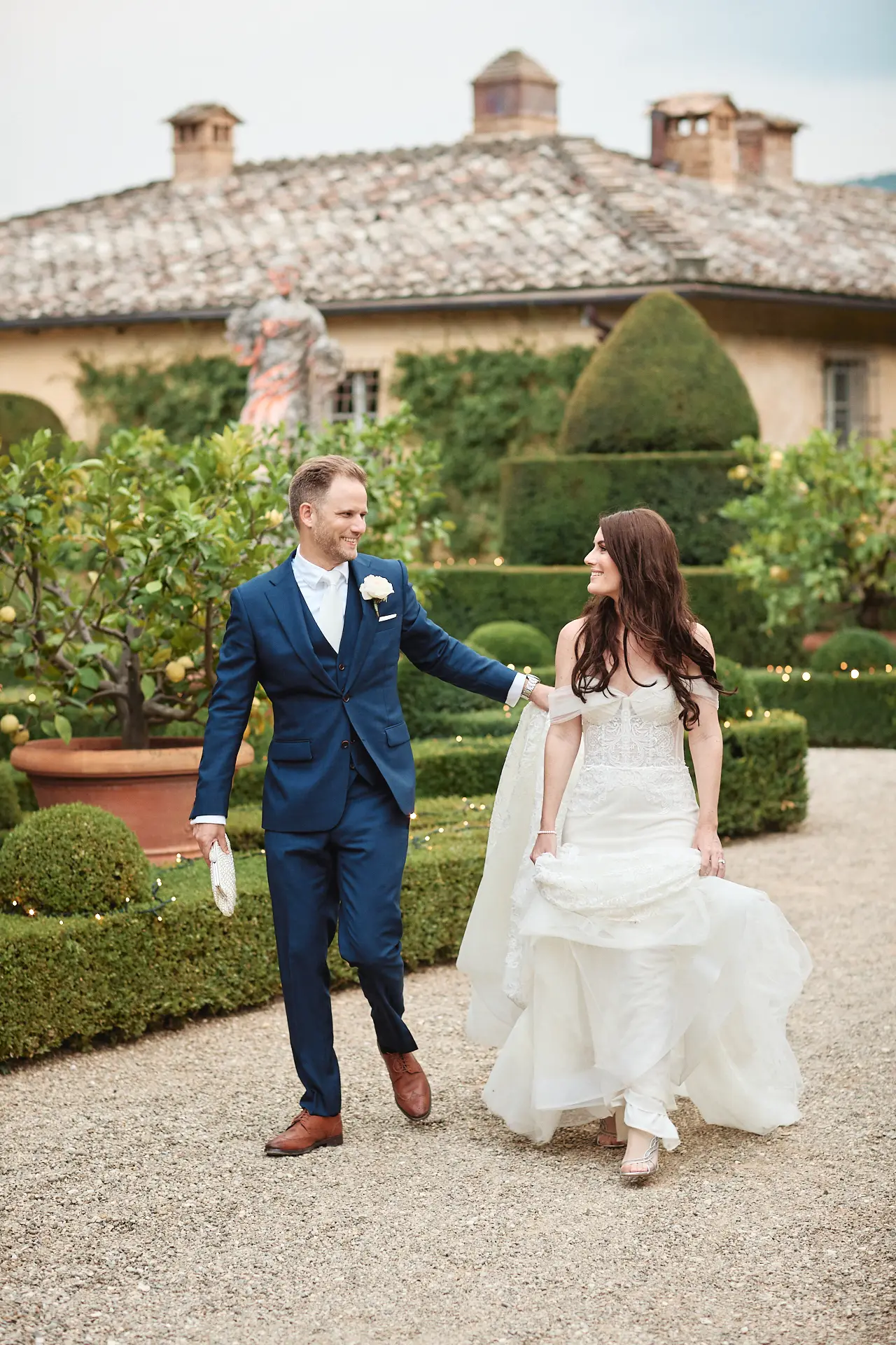 Gina and Alex’s multi-day wedding was the embodiment of Tuscan elegance, a celebration that unfolded across two of the region’s most iconic properties. Their vision was for a traditional, deeply personal event that felt like a grand family holiday, and they chose the magnificent Villa Cetinale as their home for the week. This is the story of their wedding day, a journey of surprise, beauty, and unforgettable moments.