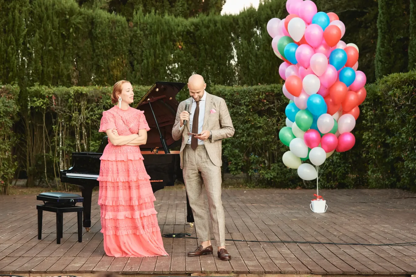 The entire experience was designed to be seamless. The surprise journey transitioned perfectly into a relaxed aperitif, giving guests the time and space to socialize and connect while a pianist, stationed at a grand piano on the open-air theatre stage, provided a beautiful acoustic backdrop.