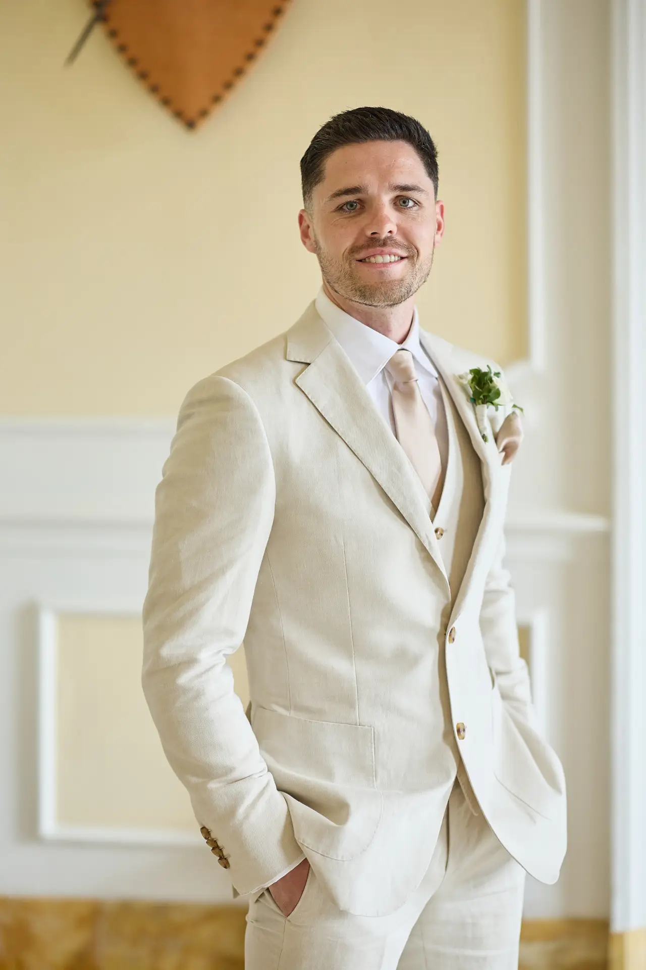 The day began with a palpable sense of serene anticipation. As Antoinette and her bridal party prepared, the villa was filled with a quiet energy, the kind that precedes an unforgettable event. Every detail, from the delicate lace of the bride’s gown to the bespoke stationery suite, was a reflection of the couple’s impeccable taste: stylish but never overdone, relaxed but incredibly thoughtful. Our team worked discreetly in the background, ensuring every logistical element was in place so the couple and their families could remain completely present in the moment.