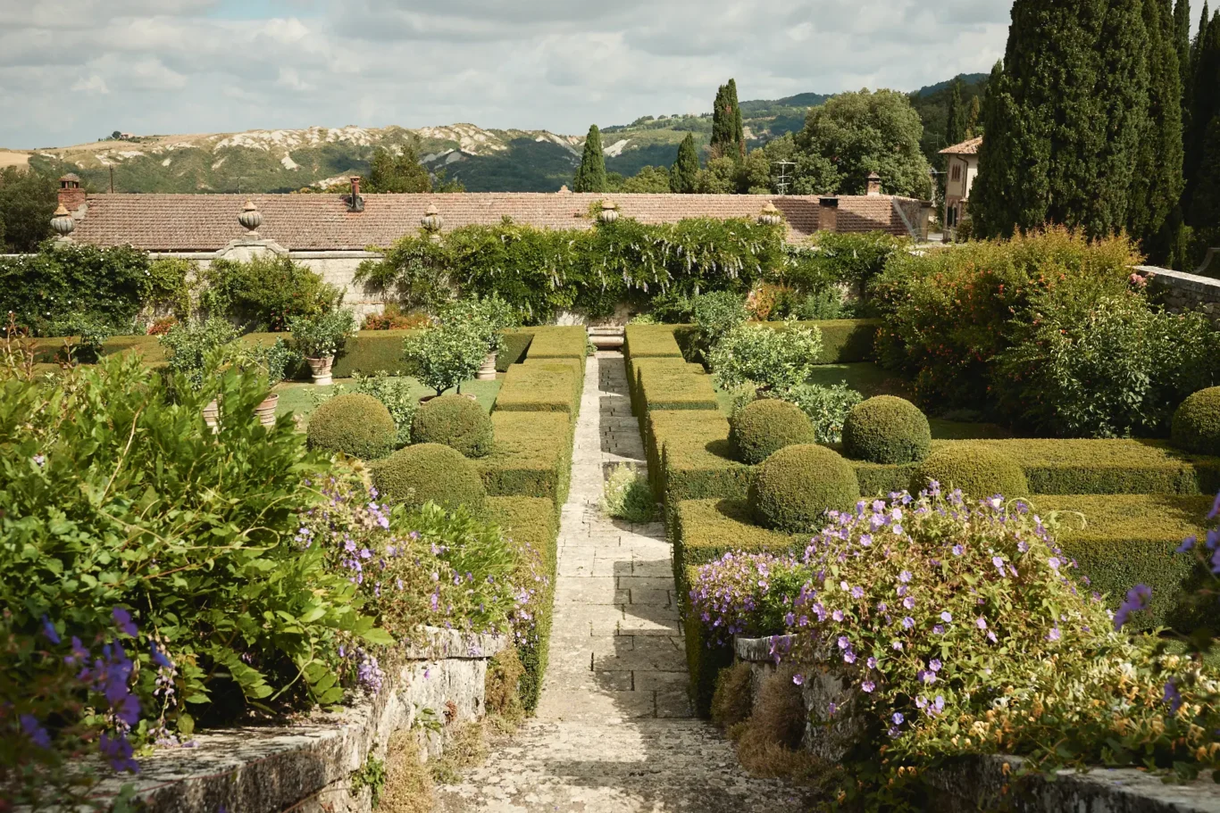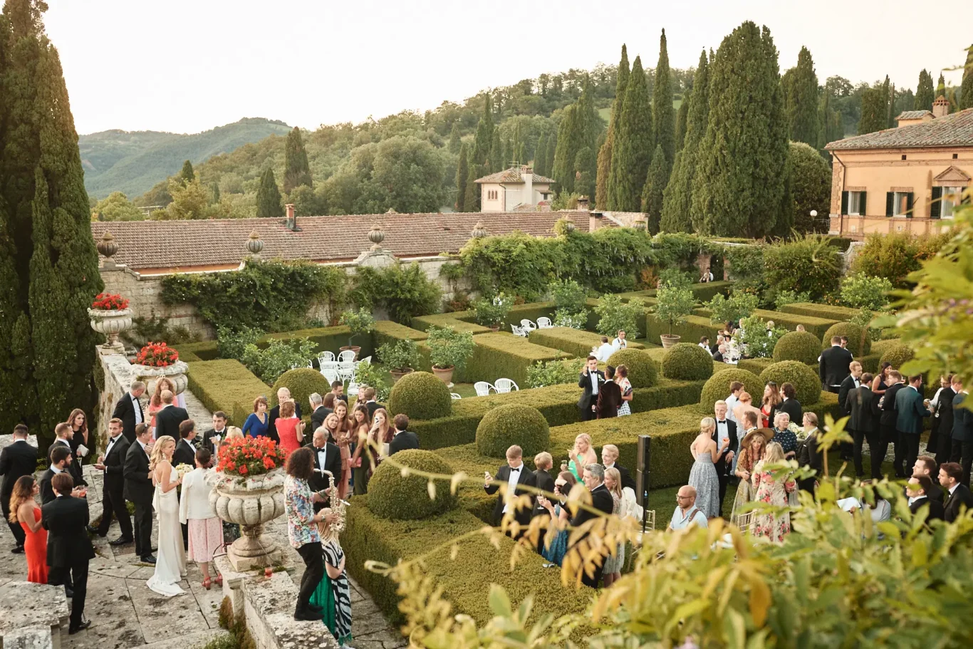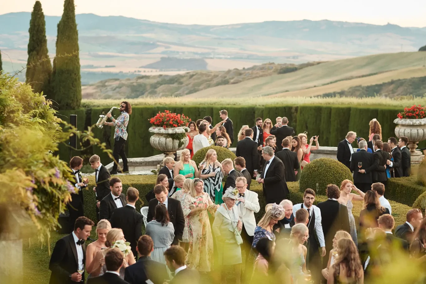 The celebration then moved to the world-renowned gardens of Villa La Foce. Despite the storm having passed through the estate, our teams worked discreetly to ensure the grounds were immaculate for the guests’ arrival.