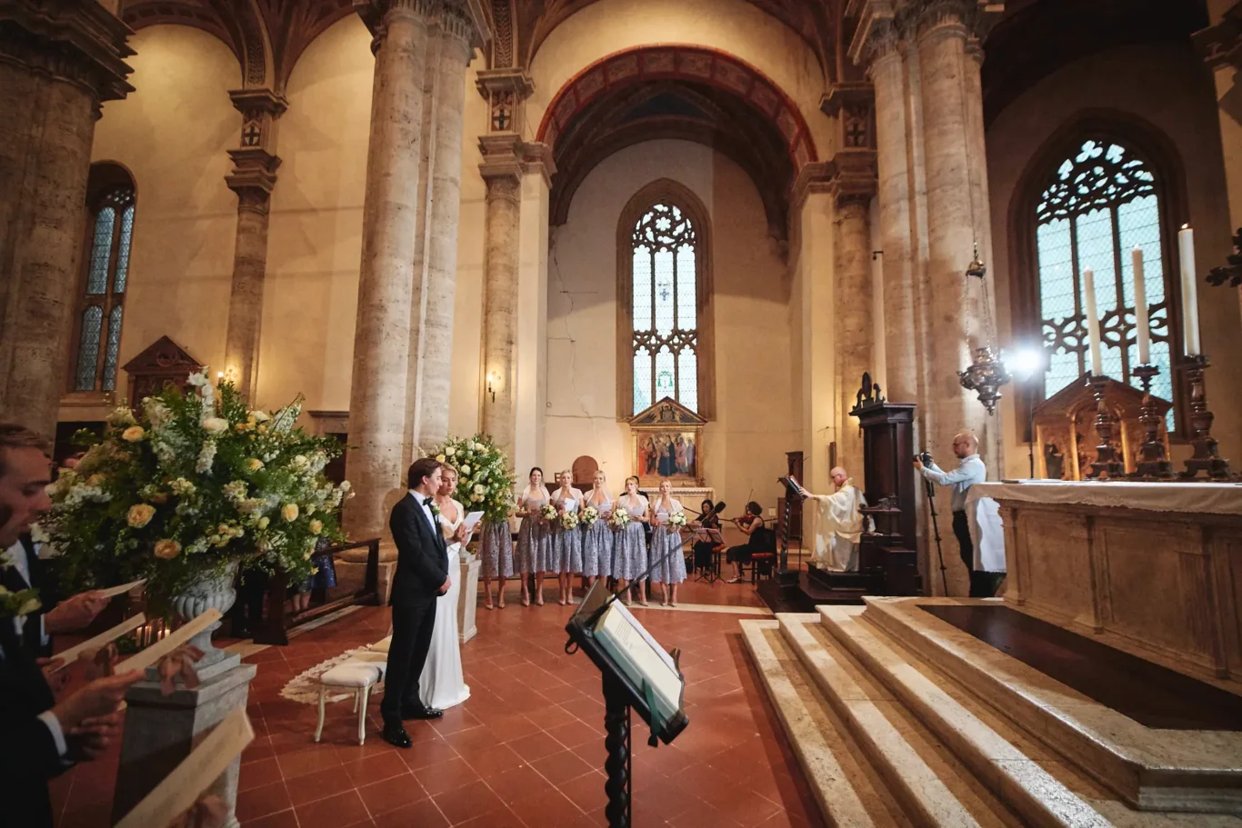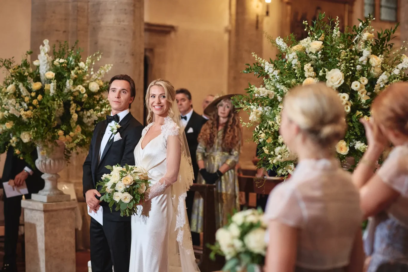 - Style: Classical romantic church wedding in Tuscany for a young couple from London.