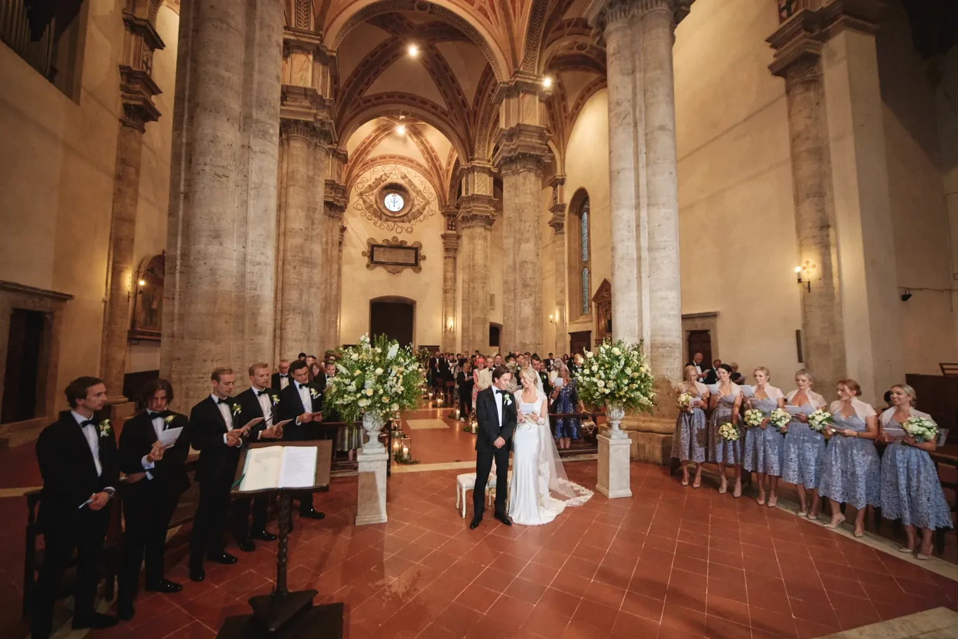 This is the story of how we brought that dream to life across two of the Val d’Orcia’s most legendary locations: Pienza Cathedral and the iconic Villa La Foce. It’s a story of art and heart, but also a testament to seamless planning when faced with the beautiful unpredictability of a Tuscan summer storm.