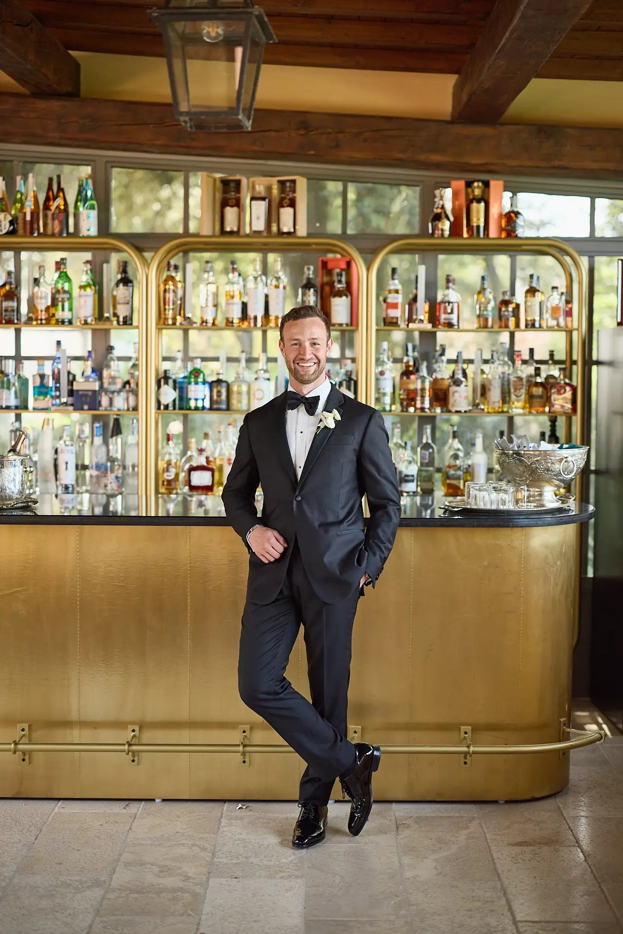 The wedding day morning was filled with a beautiful, calm energy. Within the magnificent main floor lounge of the villa, Emma and her bridesmaids shared laughter and champagne as they prepared for the day. Meanwhile, downstairs in the villa’s private bar, Eric and his groomsmen shared a few drinks, making toasts and taking photographs in the cool, atmospheric space. Once ready, Emma had a touching reveal with her bridesmaids before meeting Eric for their intimate first look, a quiet moment for just the two of them before the wonderful celebration began.